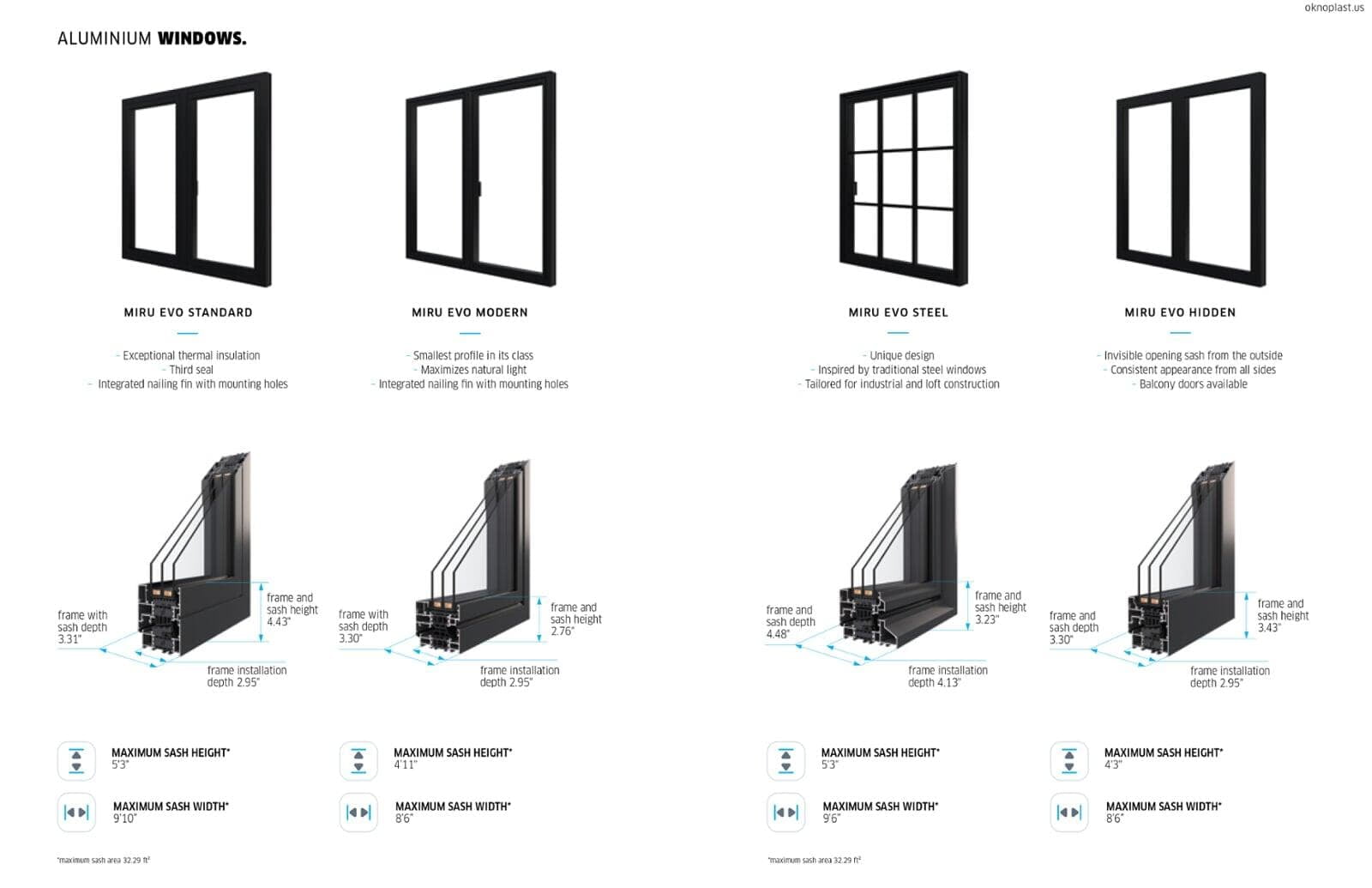 The MIRU EVO Standard window and door system sets a new standard in window insulation while offering excellent user ergonomics and a modern profile aesthetic. The system’s high rigidity allows for the construction of large windows and storefronts, even in areas with high wind loads.