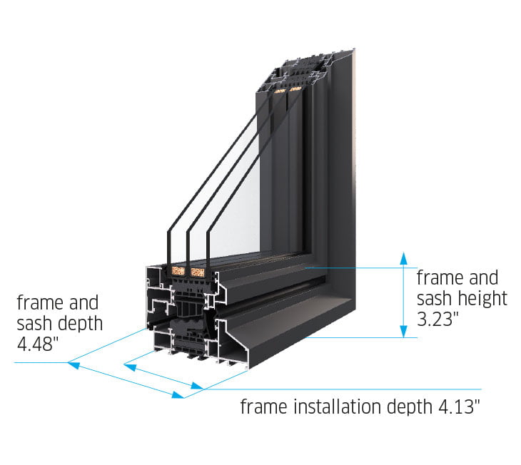 With sleek, slender profiles reminiscent of steel construction, they add an industrial and contemporary charm to your interiors. These windows offer both exceptional thermal comfort and a stylish, modern design. With a sturdy construction that boasts a 3-inch frame depth, you can be confident in their durability.